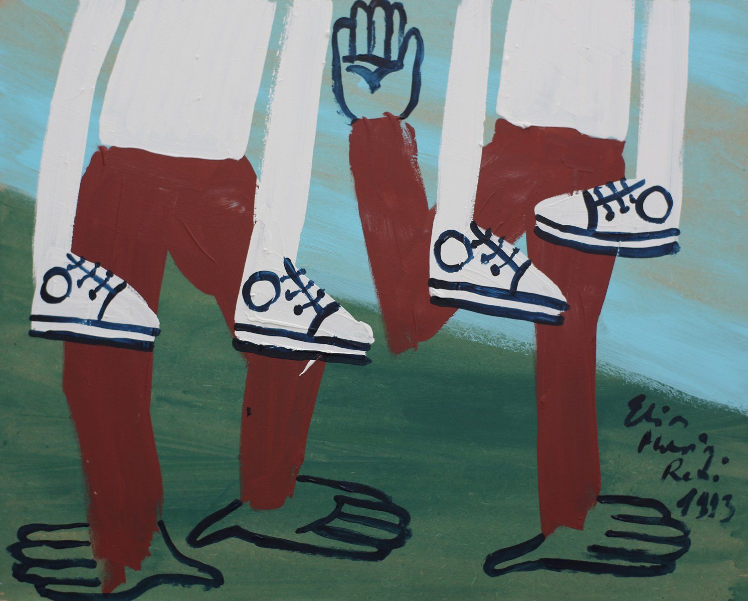 Bild unten: Elias Maria Reti ganz glücklich mit einem Bild ("Hosenwärmer Nr. 62"), Teil seines ersten "Originalismus" genannten Oeuvre, während der USA-Reise 1979.